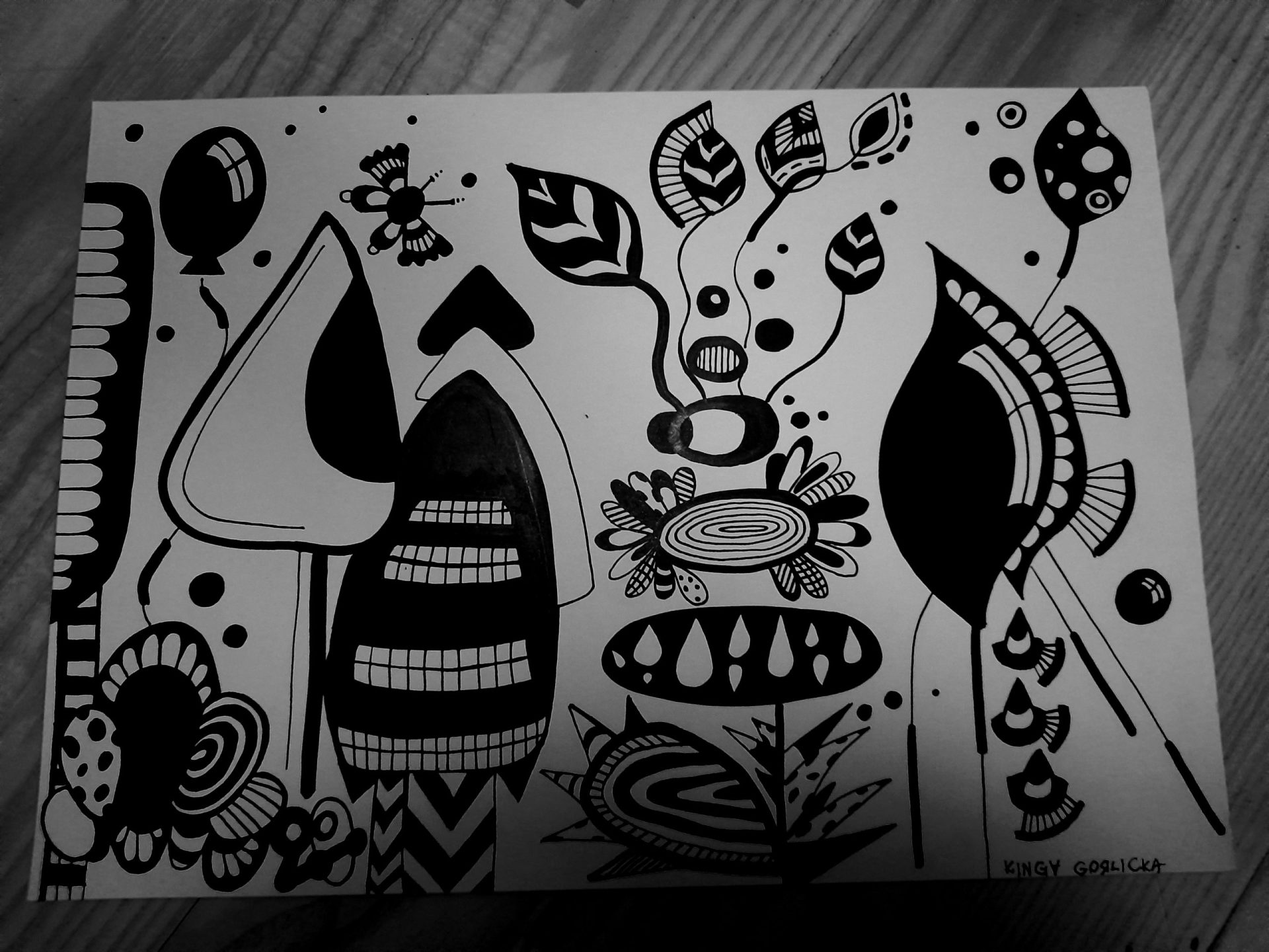 Praca w formacie A4 , czarny tusz.