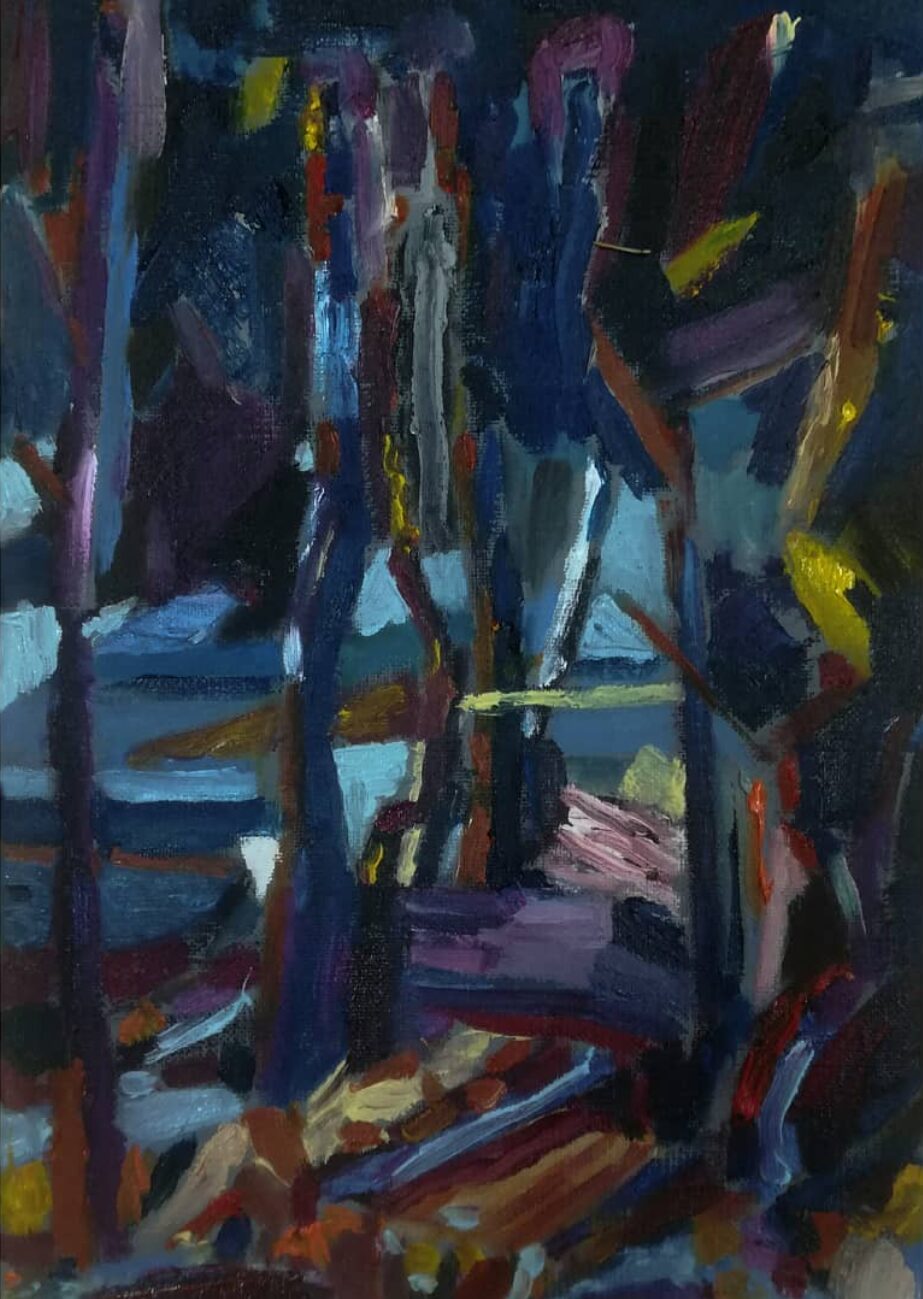 Jeden z obrazów namalowanych przeze mnie podczas wyjazdu do Harendy w 2019 roku. Właśnie podczas tamtego pleneru zrozumiałem w jaki sposób tak na prawdę chcę tworzyć i czym jest dla mnie sztuka. Można powiedzieć, że to tam, wszystko się zaczęło na nowo. W tym cichym lesie skrywającym tysiące tajemnic.
