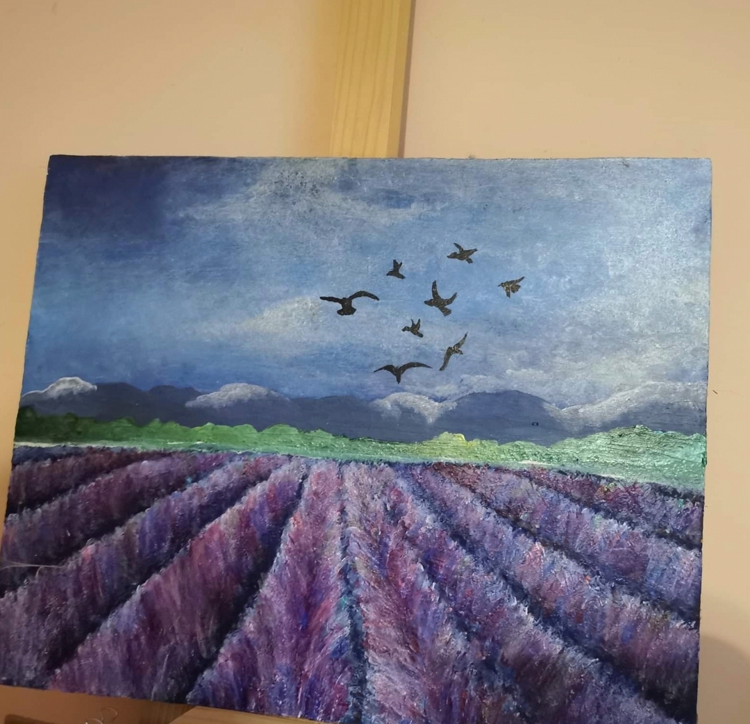 Obraz Lawendowe pole, technika szpachli malarskiej