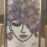 Abstrakcja w pocztówkowym formacie, „włosy” wykonane z suszonych kwiatów hortensji, całość oprawiona w ramki w kolorze srebra. Mały obrazek komponujący się w każdym wnętrzu / w biurze, w kuchni, sypialni, na salonach/ nadając otoczeniu klimatu i subtelności. Można postawić lub powiesić /ramka zaopatrzona w podpórkę/.