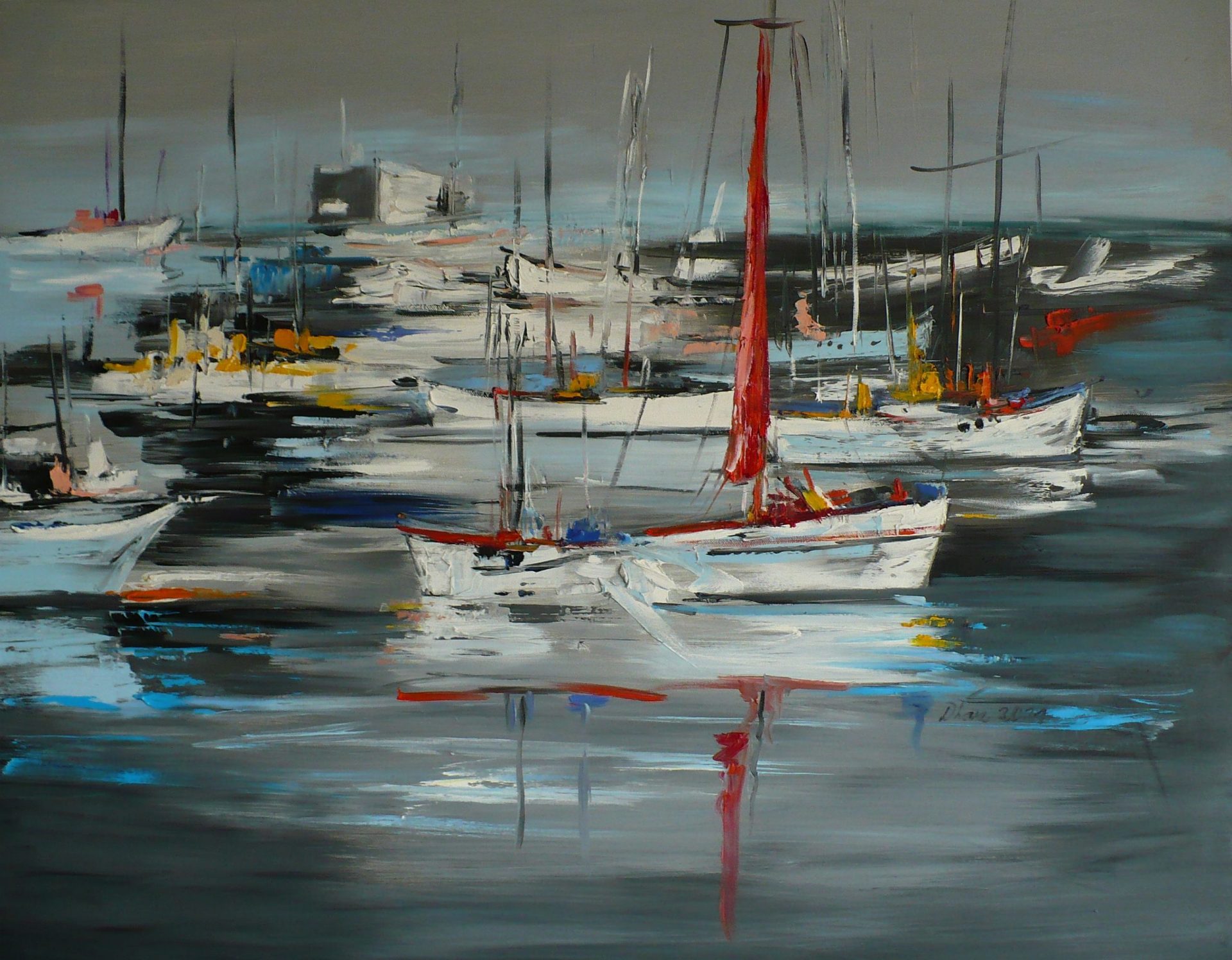 Obraz olejny namalowany na bawełnianym podobraziu pędzlem i szpachlą. daje to ciekawą fakturę.