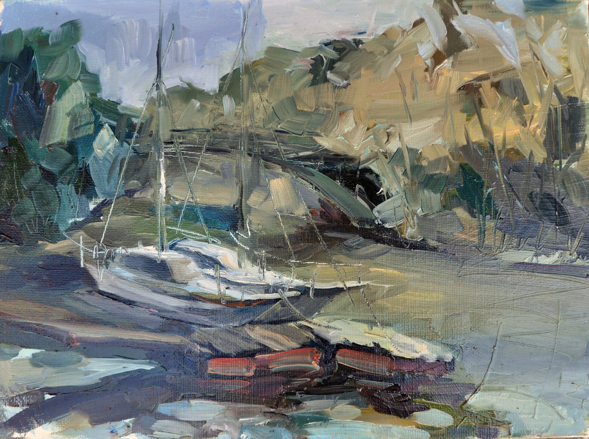Łódki, które zobaczyłam pierwszego dnia mojego przyjazdu do Polski na plener i od razu napisałam – moje wspomnienie z pierwszego dnia tam.