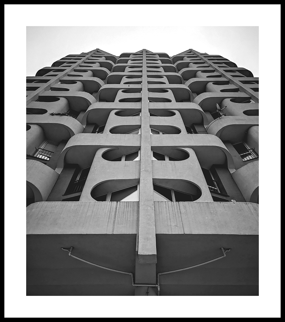 Zdjęcie przedstawia wrocławski „Manhattanu” zwanego też często „Sedesowcami” z racji owalnych zagłębień okiennych. Manhattan, to zespół mieszkano-usługowy przy placu Grunwaldzkim we Wrocławiu, który bez wątpienia jedną z ikon współczesnego Wrocławia.