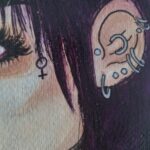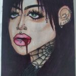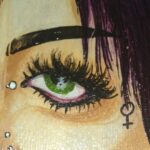 Obraz przedstawia próbę ucieczki od rzeczywistości na twarzy dziewczyny która nie potrafi żyć w zwykłym społeczeństwie.