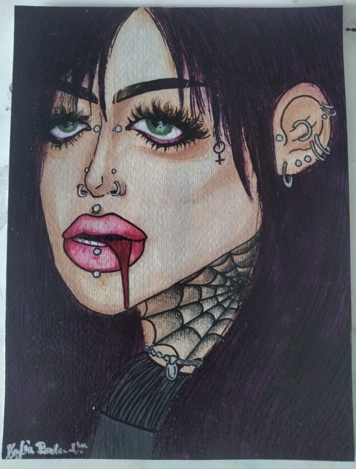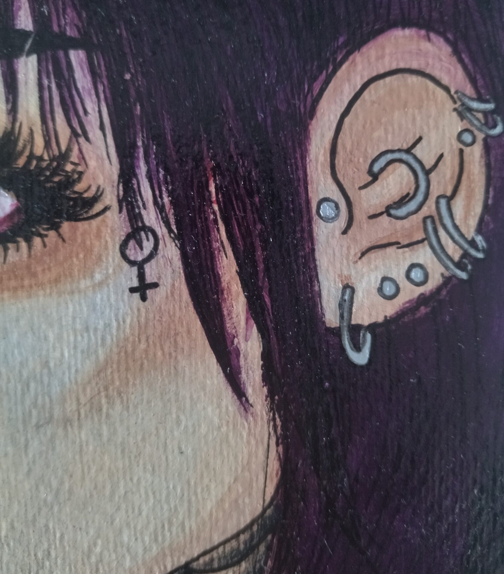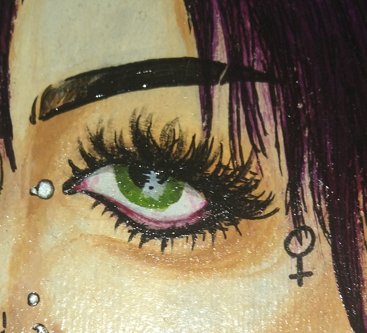 Obraz przedstawia próbę ucieczki od rzeczywistości na twarzy dziewczyny która nie potrafi żyć w zwykłym społeczeństwie.