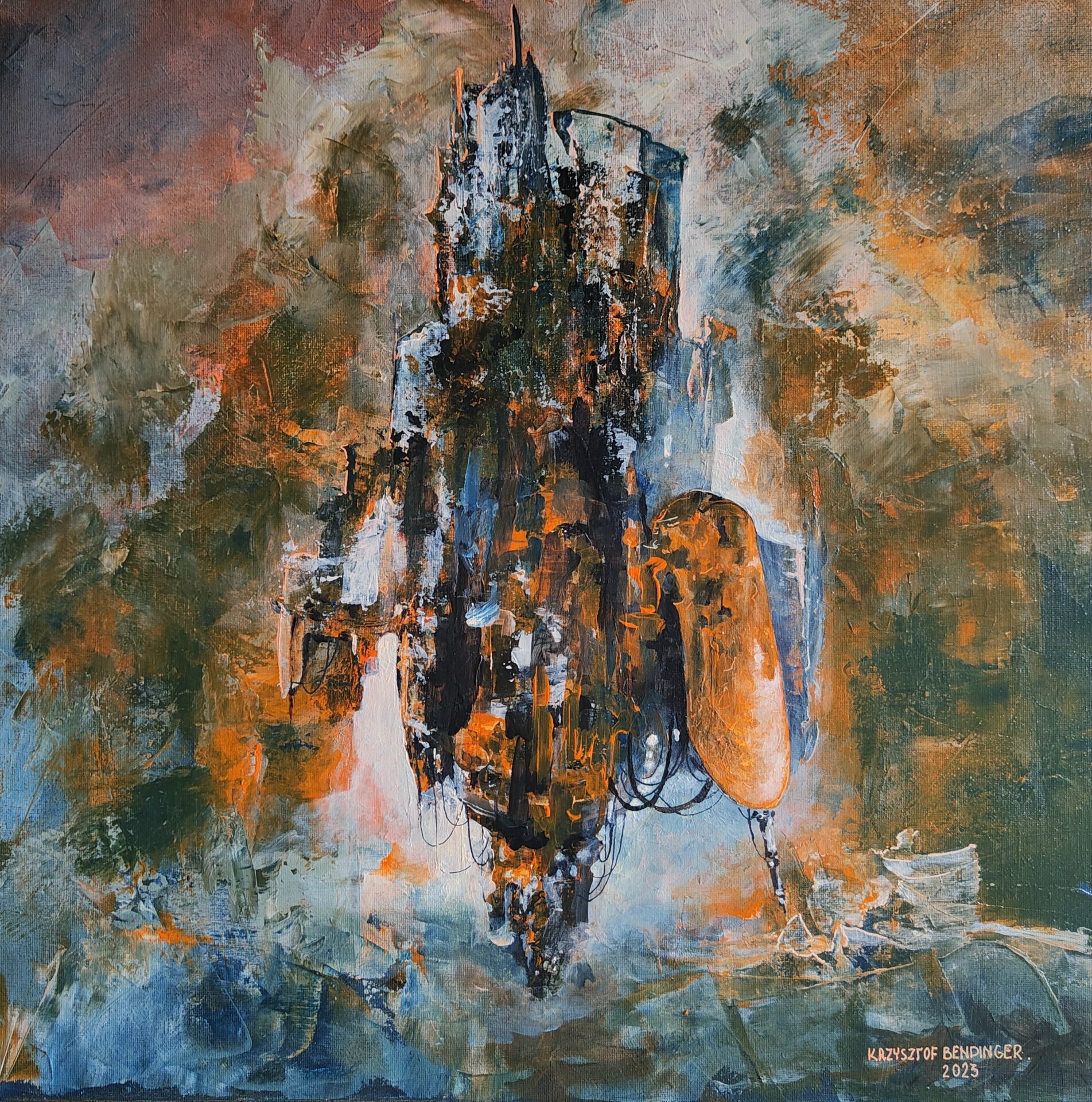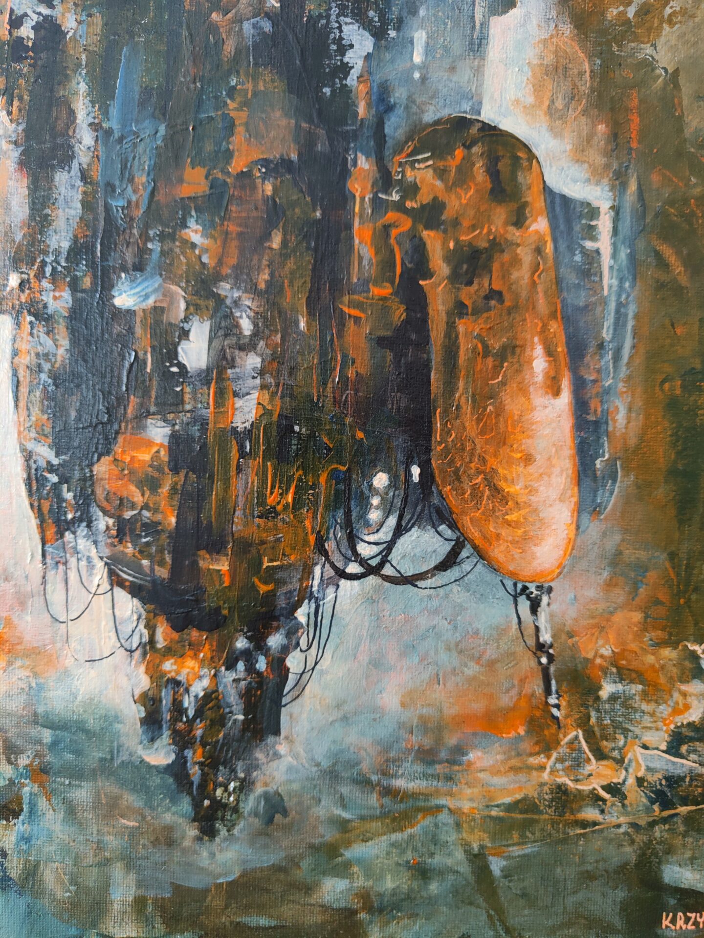 Praca jest wynikiem połączenia muzyki i mojej wyobraźni. Farby akrylowe nie dają tego efektu co olejne,ale skracają czas powstawania.