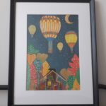 „Lot balonem” – obraz ręcznie malowany gwaszem na kartonie introligatorskim. Wymiary obrazu 21 cm x 30 cm. Sygnowany. Idealny do pokoju dziecka. Sprzedaję bez ramy i passpartout. Wysyłka kurierem lub do paczkomatu 20 zł