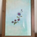 Kwiat ludowy, inspiracją była polska sztuka ludowa, szczególnie Kaszub i Warmii. Tło – akwarela na papierze. Rysunek – tusz.