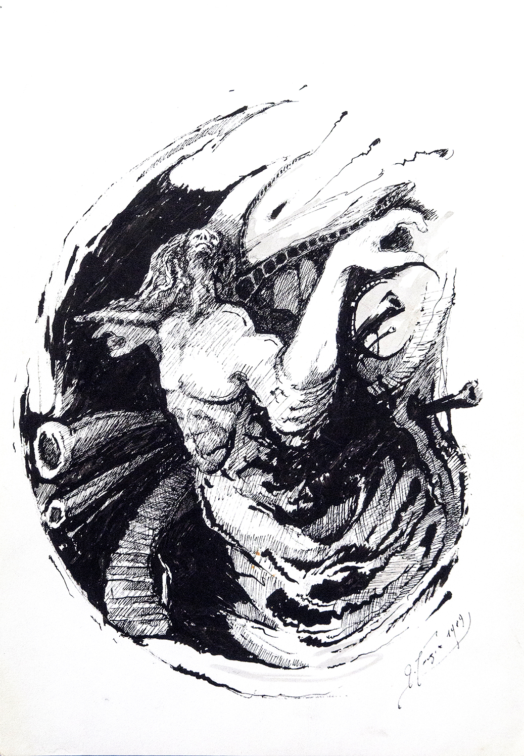 Praca w tuszu rysunek z 1989r na papierze talensa.Cena dotyczy reprodukcji na papierze fotograficznym 30 x 20 cm .Każda praca jest sygnowana z tyłu.