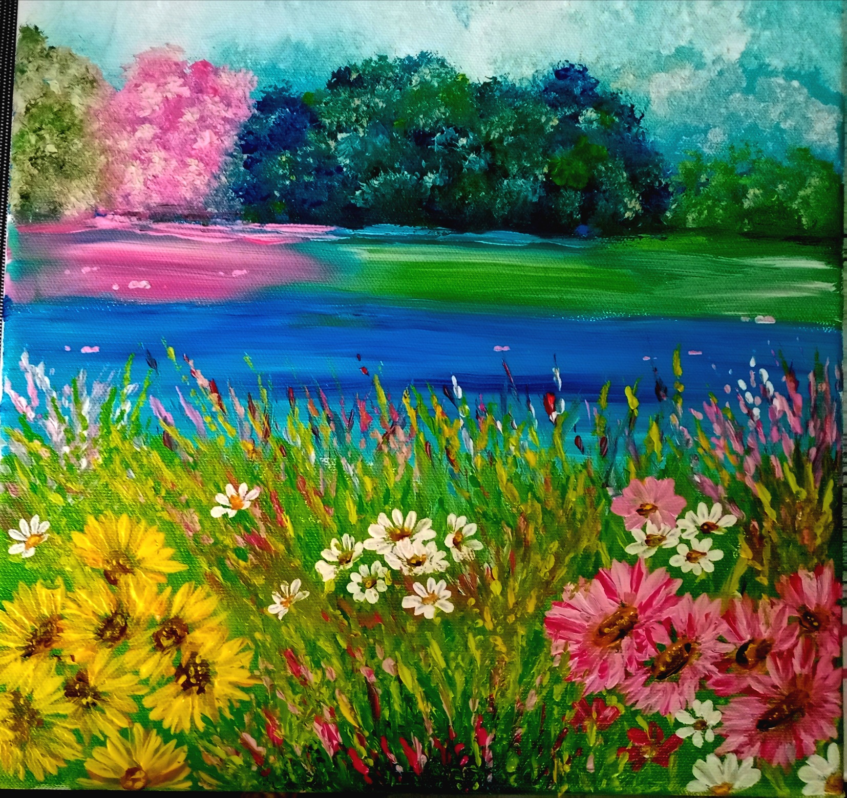 Obraz namalowany na profesjonalnym podobraziu . Płótno nabite na sosnowe krosno. Podobrazie posiada kołki rozporowe. Gramatura płótna 380 gr/m2.Użyte zostały wysokiej jakości farby akrylowe.Wymiary 30 x 30.Do pracy dołączam certyfikat. Jest to moja pracaObraz jest sygnowany i zawerniksowany.Boki zamalowane w tonacji obrazu.