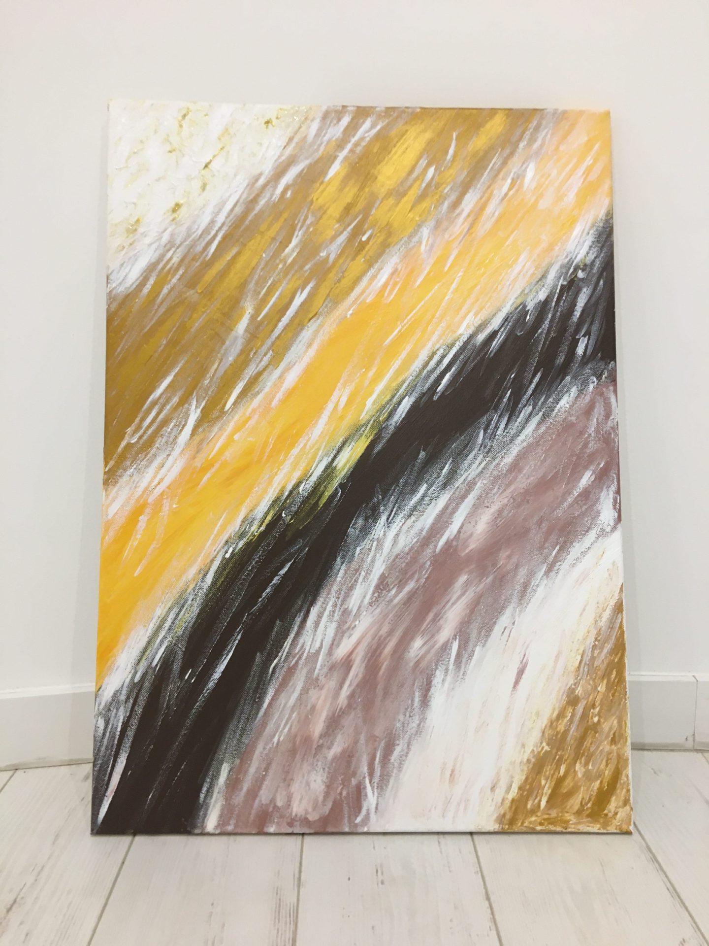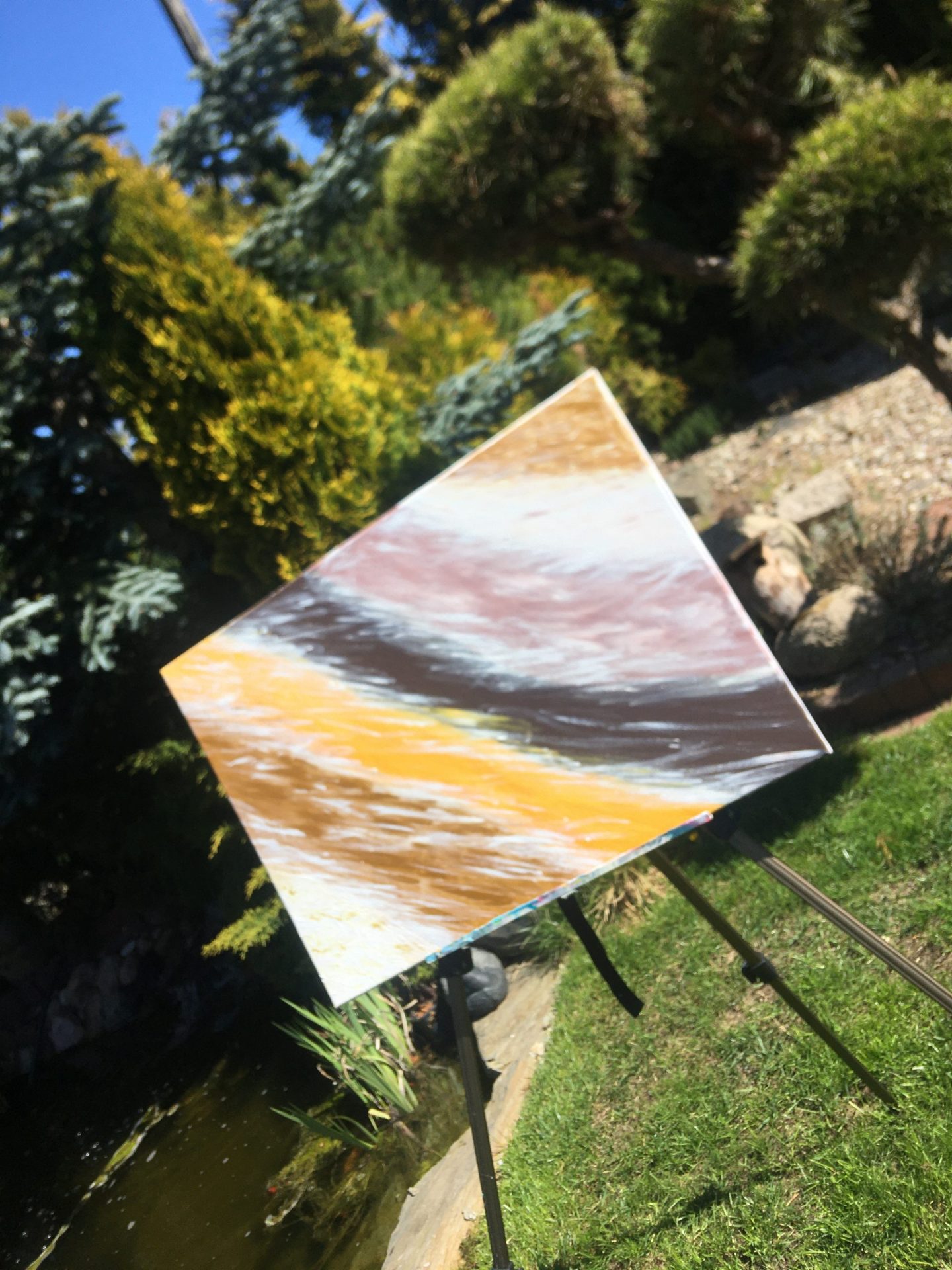 Obraz namalowany na płótnie farbami akrylowymi, jest dziełem niespodziewanym, powstał pod wpływem radości w sercu w jego przekazie jest ogrom dobrej, pełnej miłości i szczęścia energii. Malując ten obraz czułam spokój i harmonię, każde maźnięcie pędzlem napawało mnie dobrym samopoczuciem. Jeśli masz ochotę poczuć się przyjemnie i oderwać od dnia codziennego zapraszam po mój obraz, który stworzyłam specjalnie dla Ciebie, żebyś zawsze był(a) pełen miłości do siebie samego a tym samym do innych ludzi. Życzę Ci pięknych doświadczeń ze sztuką