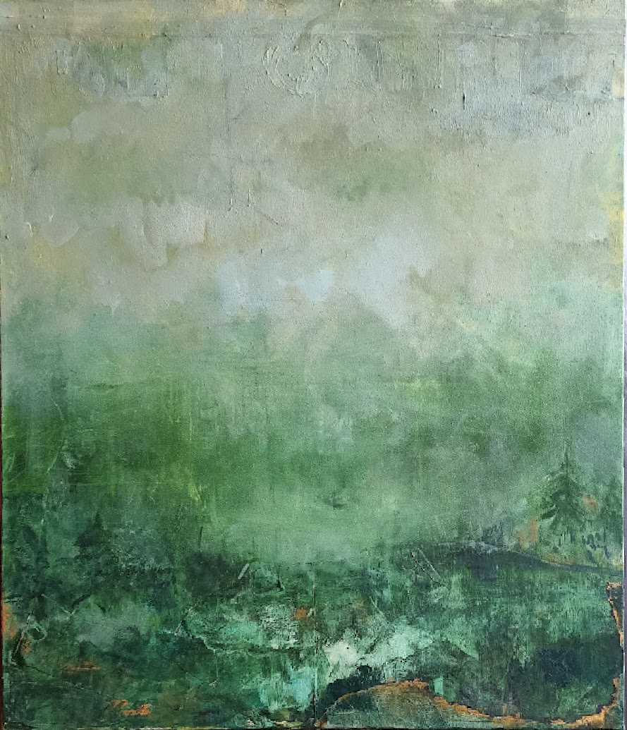 Obraz olejny na płótnie z papierem wklejonym i podmalowany farbą (dół obrazu).