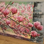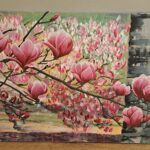 Witam ,mam na sprzedaż obraz na płótnie malowany akrylami. Rozmiar 50/70 boki zamalowane, można powiesić bez ramy. Inspiracją była przepiękna ” królowa kwiatów” Magnolia