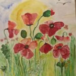 Akwarela Maki w słońcu została namalowana na papierze 300 g , na formacie A4.