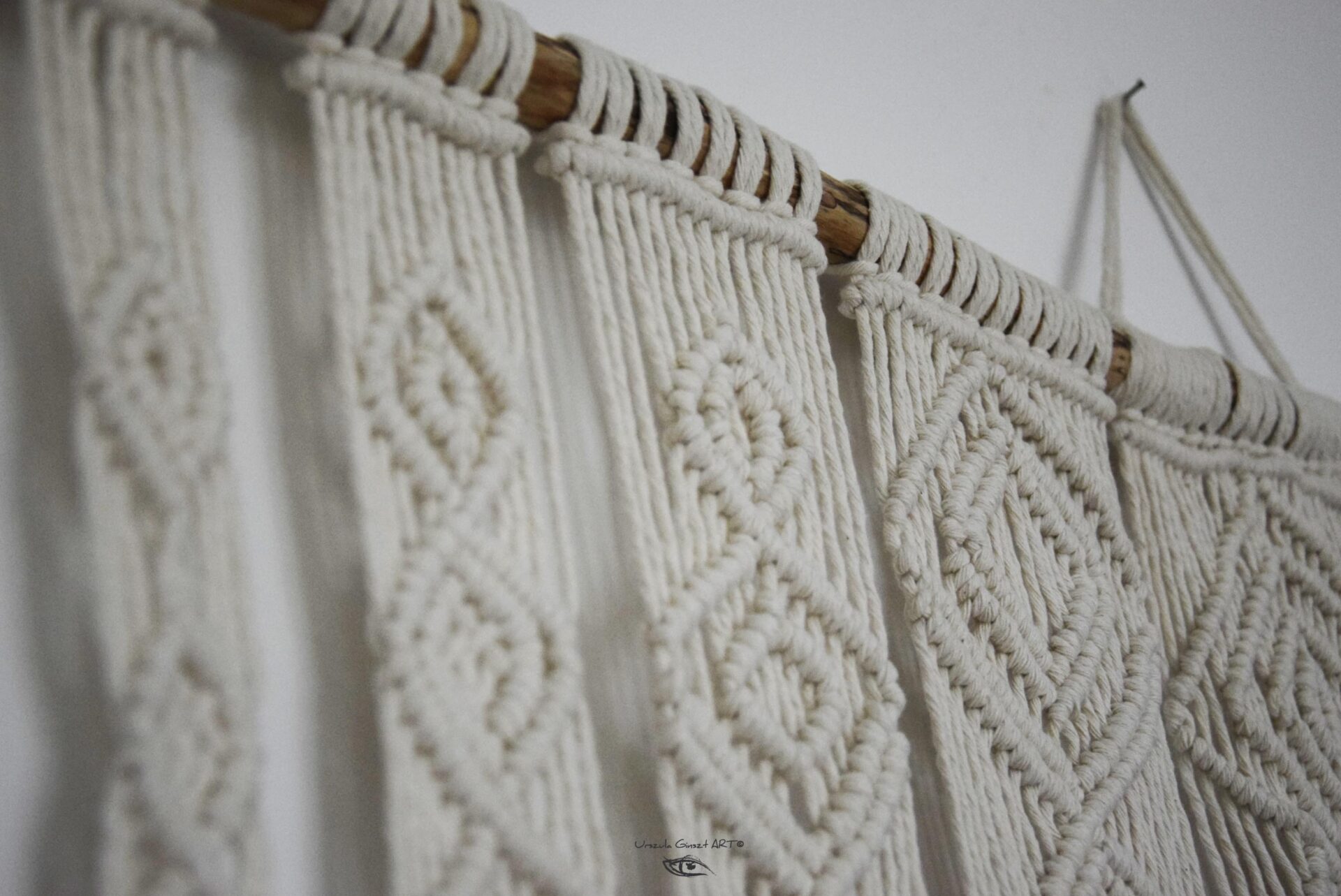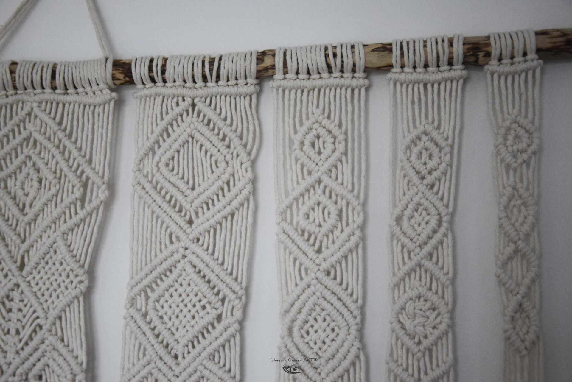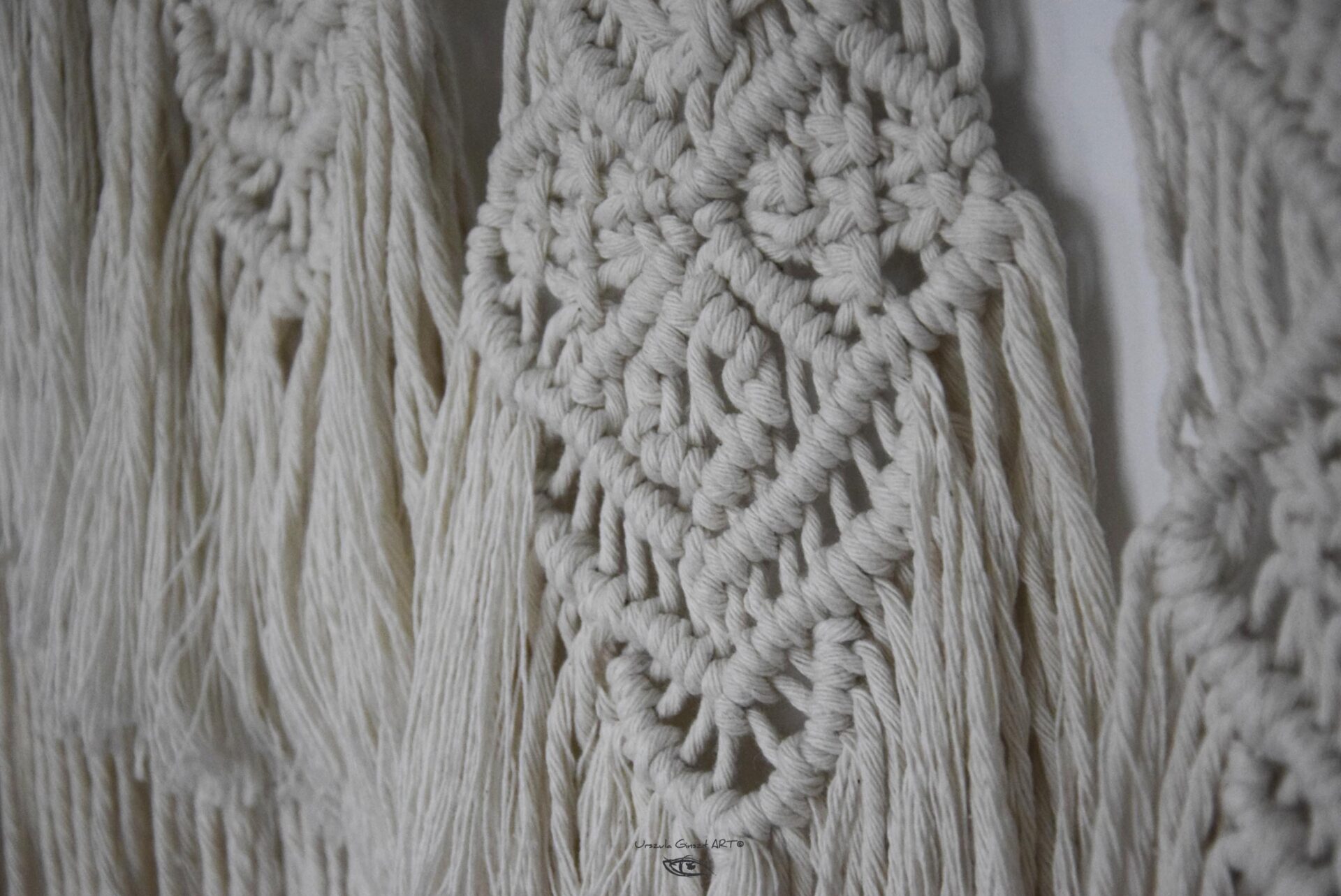 Długie, zimowe wieczory w mojej pracowni na poddaszu, natchnęły mnie do wyplecenia przemyślanej makramy artystycznej „Zakątek Pracowni”. Wykonana z zaplatania różnych rodzajów węzłów makramowych w czasie długich wieczornych godzin. Dzięki temu jest dopracowana, jedyna i orginalna.