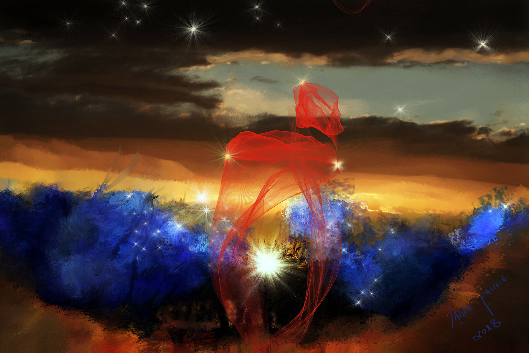 Malarstwo cyfrowe autorska praca tablet graficzny program Corel Painter ,reprodukcja na papierze fotograficznym Fuji 40 x 30 cm. Wysyłka w tubie tekturowej.Praca sygnowana posiada białą obramówkę