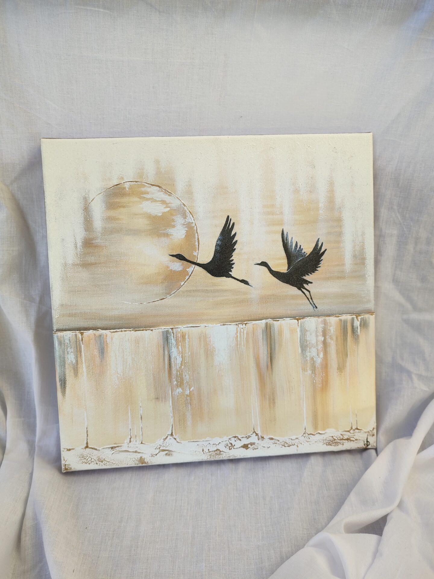 Przedstawia na pewno żurawie, a resztę zostawiam do interpretacji odbiorcy. Mam swój zamysł, ale nie chcę nic sugerować. Jestem ciekawa, co tam widzicie 🙂