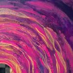 Mandala z lusterkiem w centrum, na fioletowo-złotym tle. Wymiary obrazu 100x100x4 cm. Boki zamalowane, nie wymaga dodatkowej oprawy.