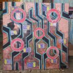 Abstrakcja, z wyraźnie zaznaczona dominantą motywu i kcentu koloru, dobrze wypełnia dla siebie stworzona przestrzeń, daje neutralność, rytm a jednocześnie bawi