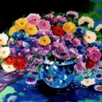 Obraz „Marcinki w kryształowym wazonie” Rok powstania 2023.Wymiary 70 x 50 cm. Obraz pokryty werniksem co zabezpiecza go przed zniszczeniem, tj. kurzem i innymi zjawiskami atmosferycznymi, Obraz jest ręcznie malowany farbami akrylowymi jako podkład do farb olejnych. Marcinki są malowane na płótnie najlepszej jakości farb. Sygnowany z przodu jak i na tylnej części płótna. Autor: Teresa Kopańska – artysta malarz. Obraz charakteryzuje się cudowną gamą kolorów co dzieło to pięknie ożywi każde pomieszczenie. Obraz nie posiada ram co nie przeszkadza zawieszeniu go na ścianie ponieważ ma zamalowane boki w kolorach całości obrazu.