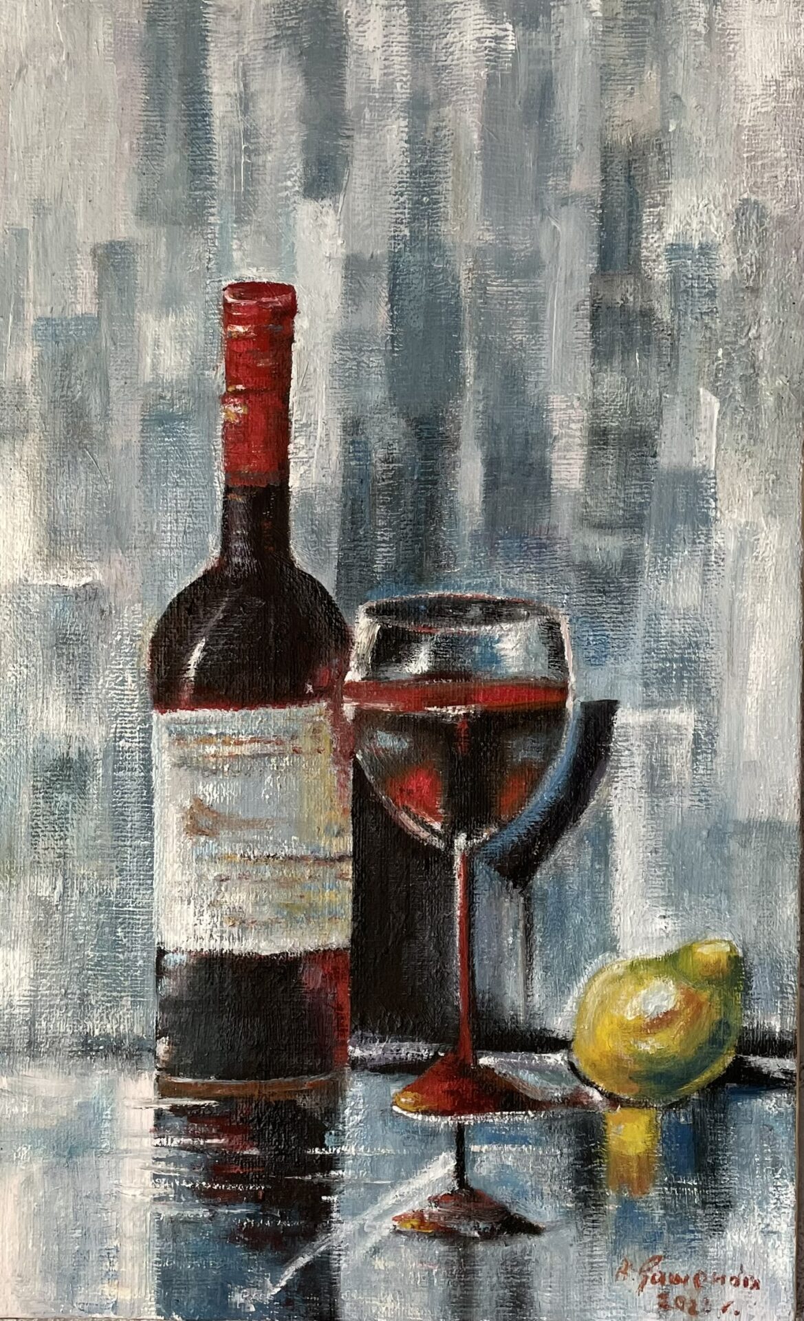 Olej na płótnie. Bez ramy. Boki obrazu oklejone. Kolorystyka obrazu wyraźna z przewagą odcieni niebieskich.