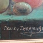 Obraz uznanego i cenionego malarza Cezarego Zbrojewskiego. Martwa natura na tle zabytków Opola. Nie lada gratka dla miłośników tego miasta. Wymiary obrazu 50×40 cm. Wymiary z ramą 59×48 cm.