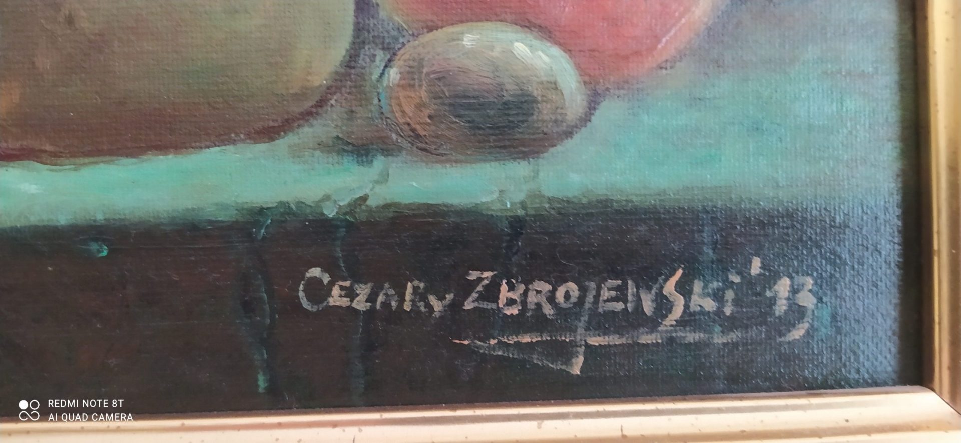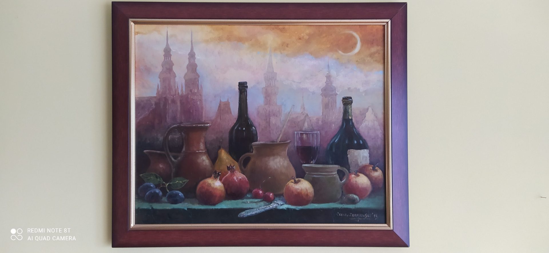 Obraz uznanego i cenionego malarza Cezarego Zbrojewskiego. Martwa natura na tle zabytków Opola. Nie lada gratka dla miłośników tego miasta. Wymiary obrazu 50×40 cm. Wymiary z ramą 59×48 cm.