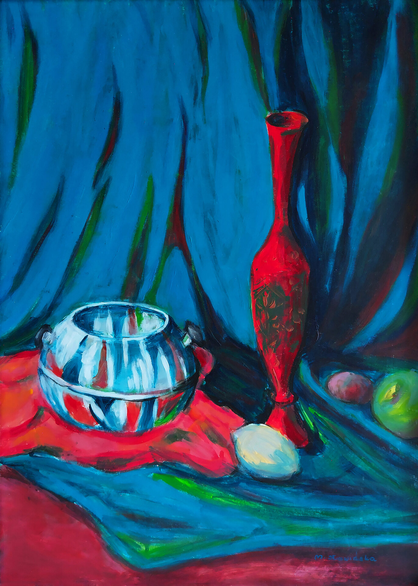 Obraz został namalowany farbami akrylowymi na kartonie w duchu malarstwa fowistycznego, w ramach projektu „Fowizm”.