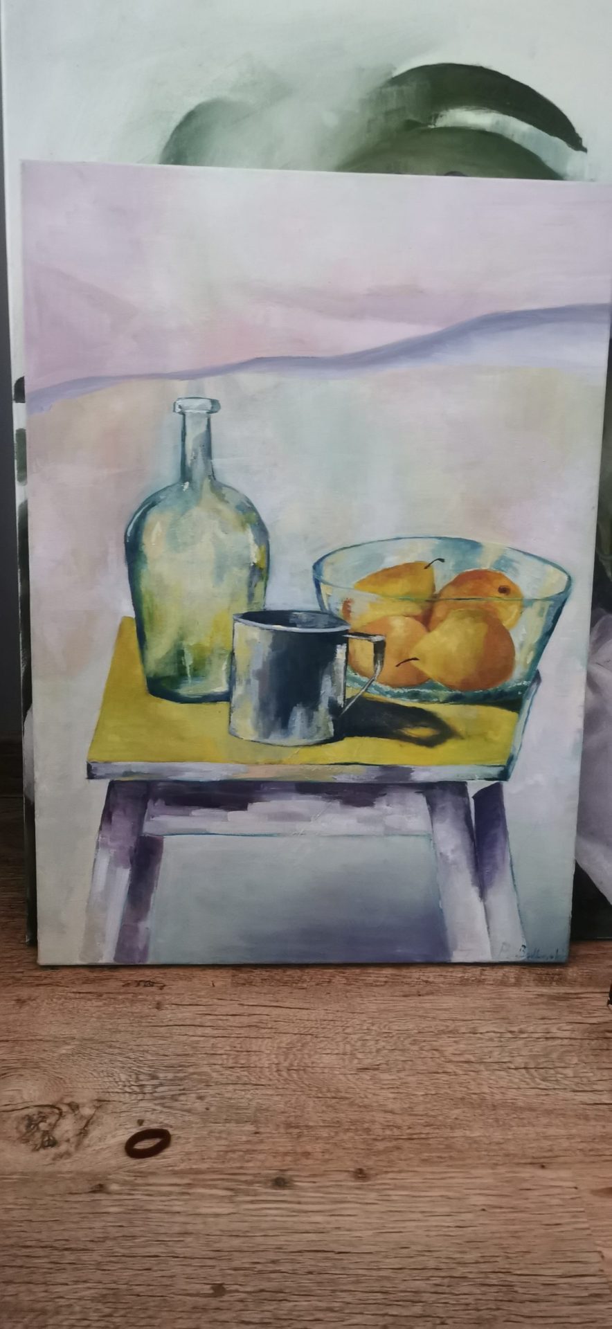 Obraz łączy w sobie realizm i kubizm. Doskonały akcent do każdego mieszkania. Malowany farbami renomowanymi farbami olejnymi na płótnie bawełnianym o wysokiej gramaturze. Każdy z moich obrazów jest sygnowany i utrwalony warstwą werniksu. Wymiary 50×70.