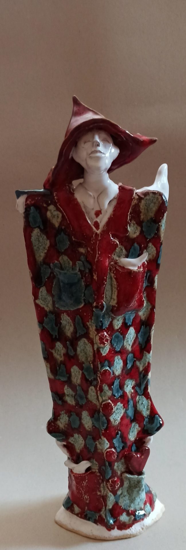 RZEŹBA CERAMICZNA Z GLINY SZAMOTOWEJ I CEGLANEJ. POKRYTA KOLOROWYM SZKLIWEM. WYPALAJĄ W TEMPERATURZE 1060 stopni.