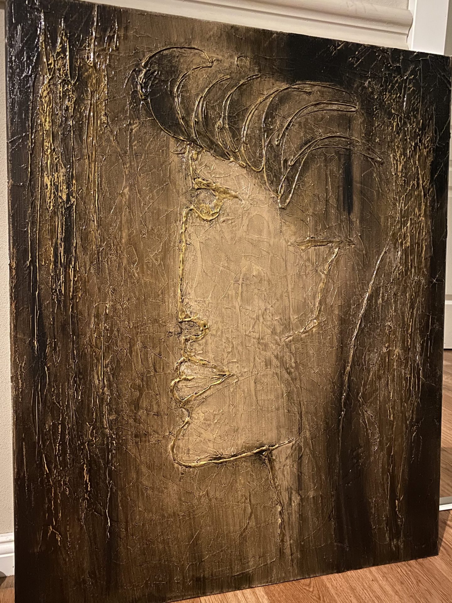 obraz olejny o wymiarach 80x65cm z wykorzystaniem złota oraz pasty malarskiej