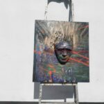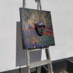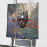 Praca o tytule #maska w rozmiarze 56×60 cm na płycie! / desce grubości 4 cm