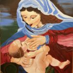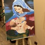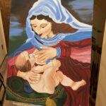 Obraz Matko Bożej karmiącej z Dzieciątkiem. Obraz malowany farbami akrylowymi na płótnie. W każdym domu w którym wisi obraz matki Boskiej karmiącej jest pomyślności i szczęście. Jest symbolem Macierzyństwa miłości i poświęcenia