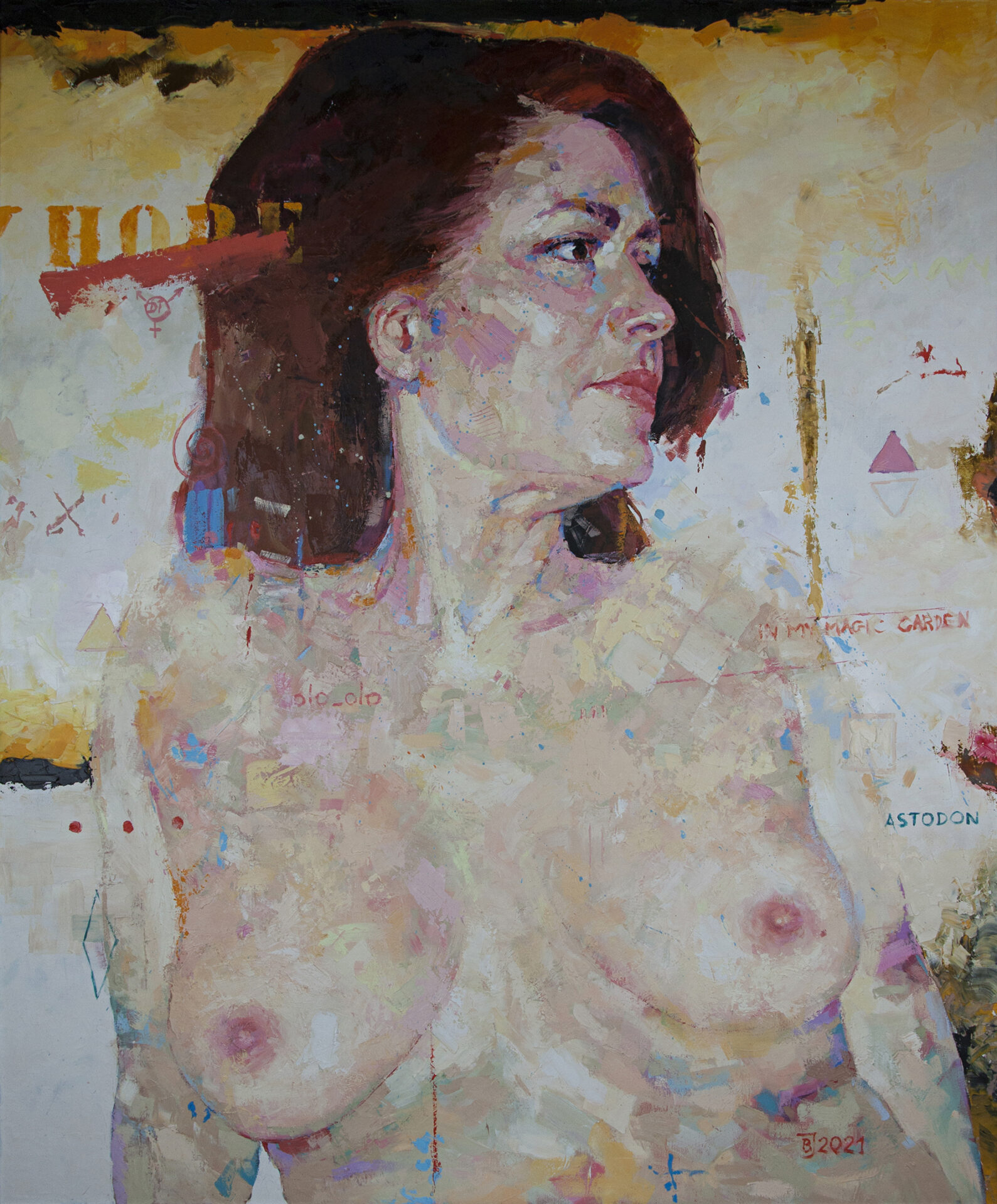 Piękny portret postimpresjonistyczno-abstrakcyjny. Jak zwykle w moich obrazach pełno tu zagadek, rebusów i symboli.