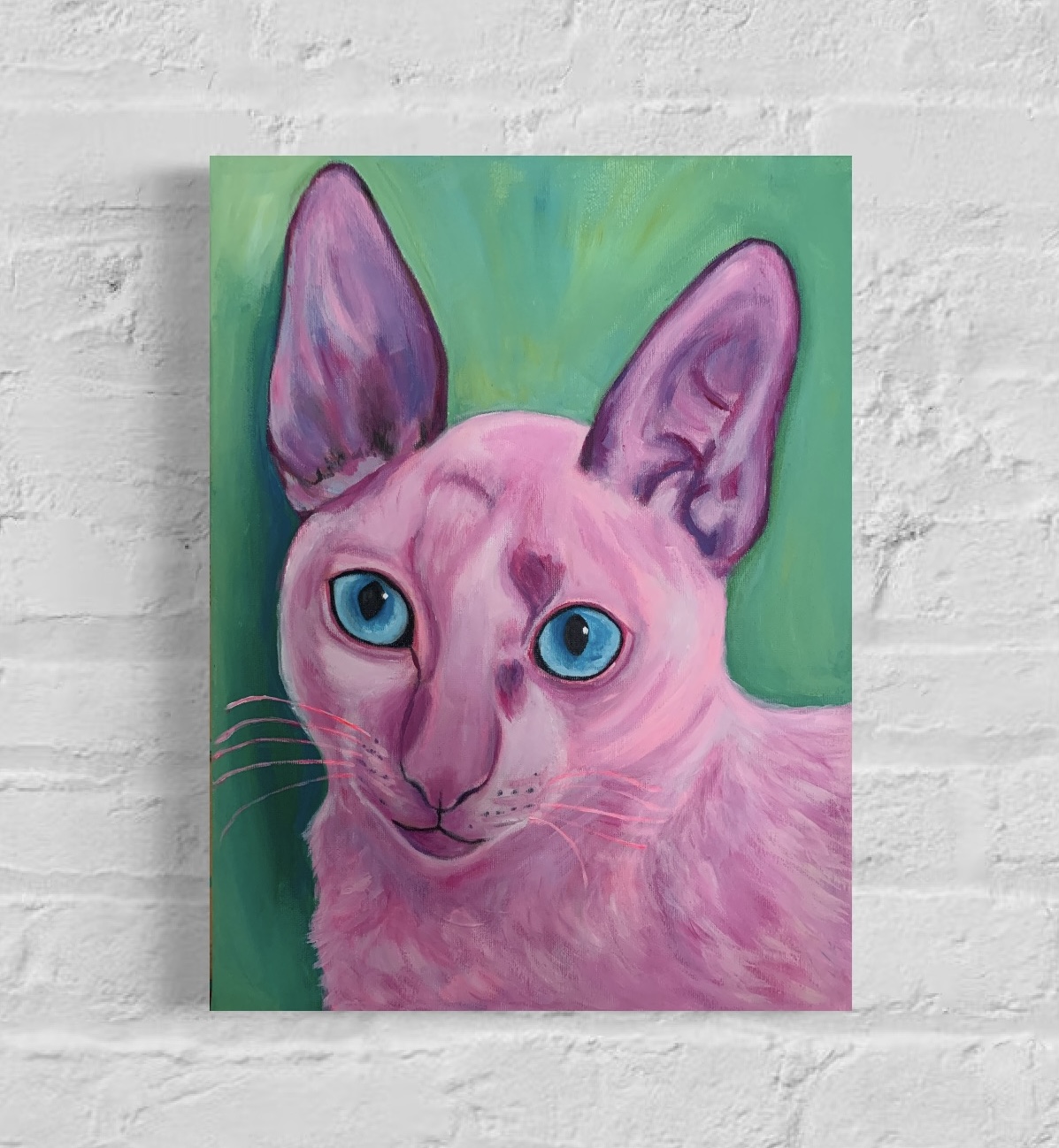 Piękny obraz kotka rasy cornish Rex malowany ręcznie akrylami na płótnie. Wymiary – 30 x 40 cm