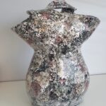 Rzeźba ceramiczna wykonana z czarnej gliny wypalona w wysokiej temperaturze , pokryta szkliwem. Jest to pojedynczy egzemplarz