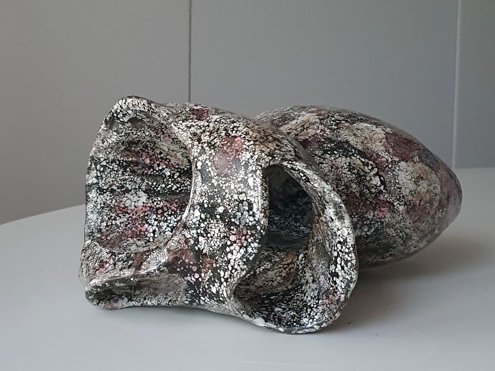 Rzeźba ceramiczna wykonana z czarnej gliny wypalona w wysokiej temperaturze , pokryta szkliwem. Jest to pojedynczy egzemplarz