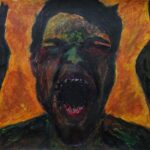 Abstrakcyjne wielobarwne dzieło. Obraz Mężczyzna i ekspresja emocji.