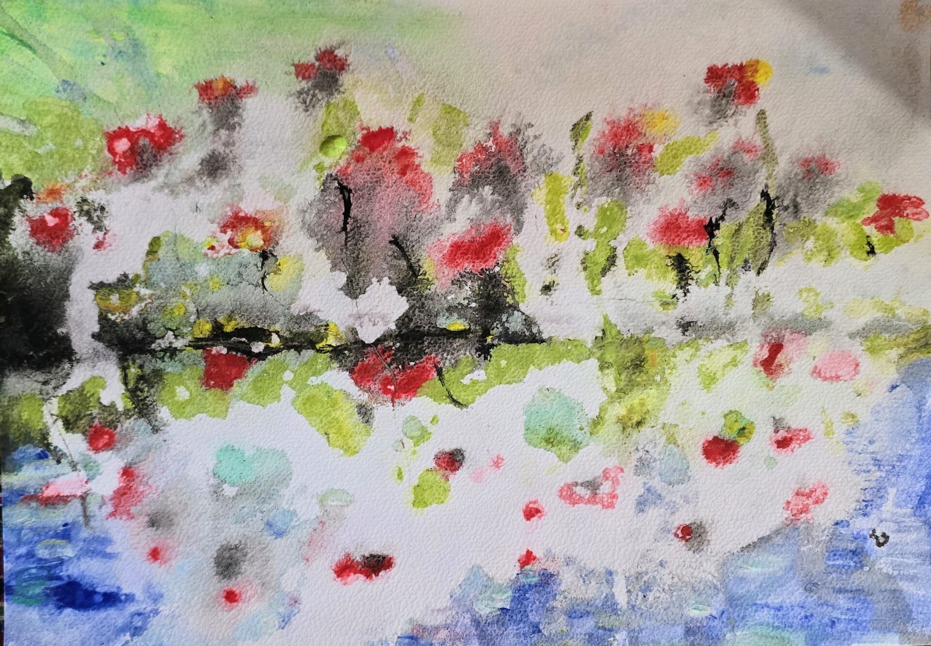 Obraz pokryty jest werniksem damarowym z połyskiem.