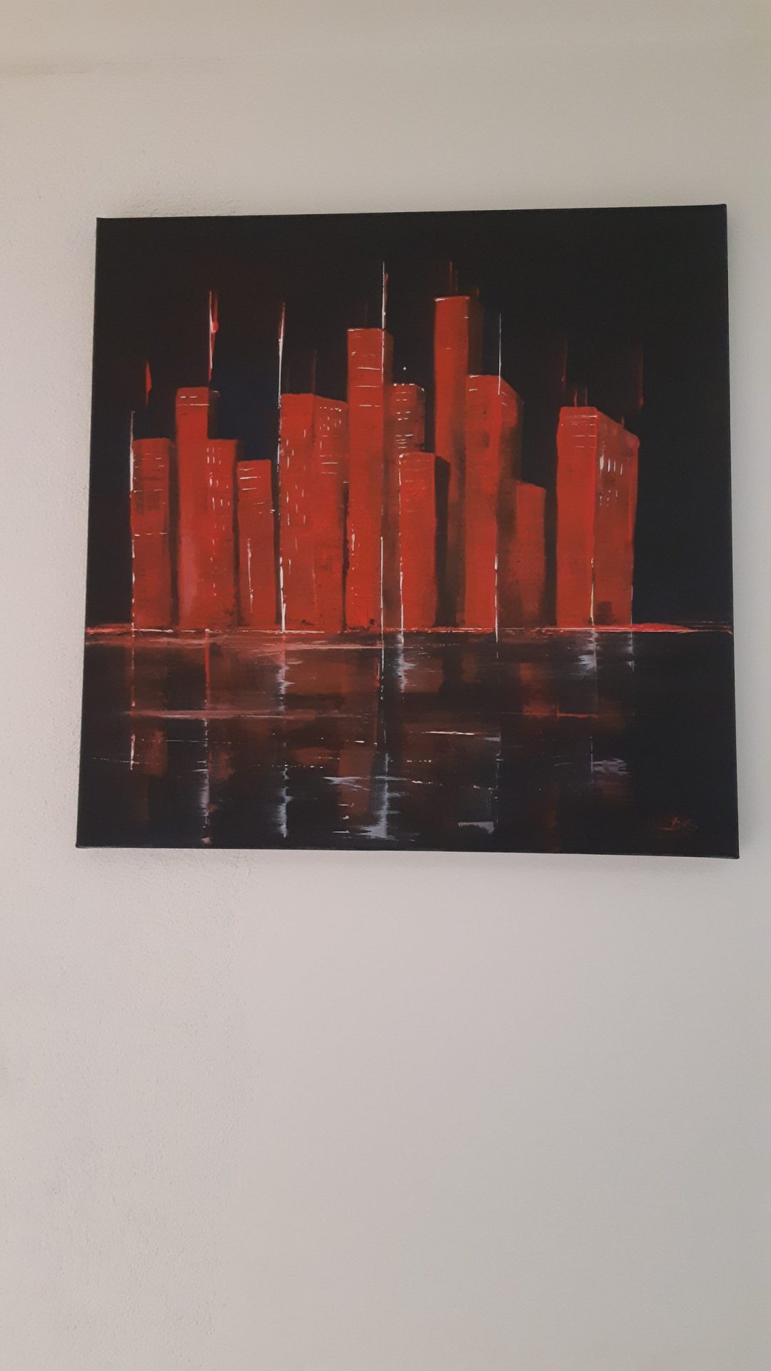 Obraz ręcznie malowany na płótnie farby akryl wymiar 30x40cm. Drugi obraz abstrakcyjny „Miasto”. Zapraszam.