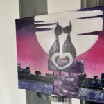 Obraz – Miasto szczęśliwych kotów -, jest to akryl na płótnie,