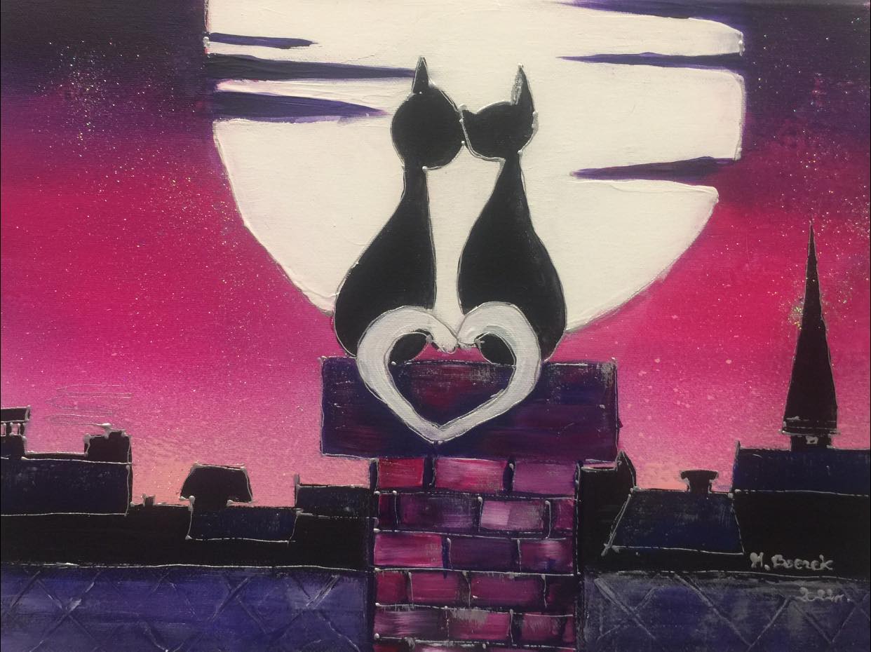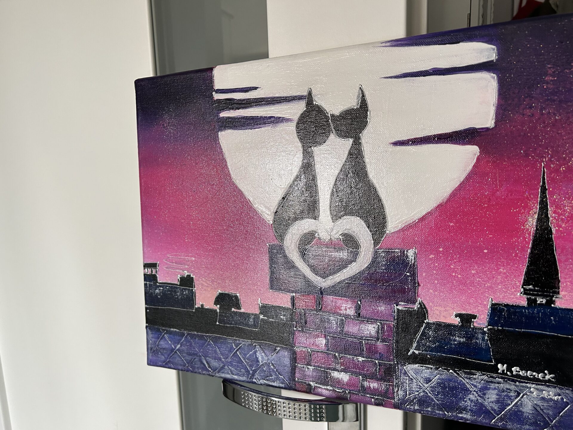 Obraz – Miasto szczęśliwych kotów -, jest to akryl na płótnie,