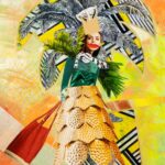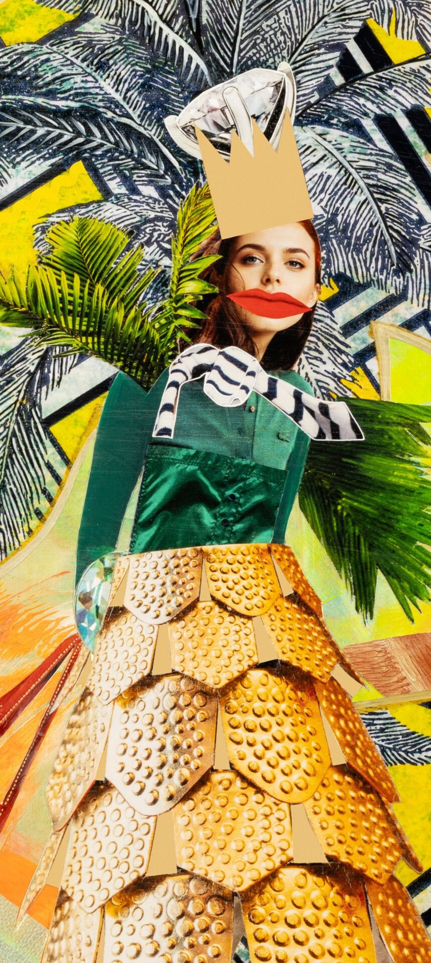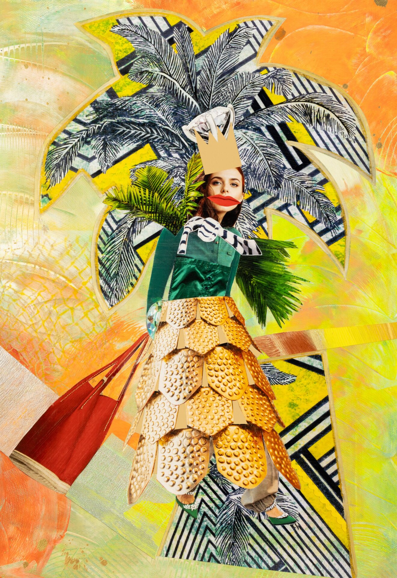 - Praca wykonana jest farbami akrylowymi na wysokiej jakości papierze (częściowo farbami fluoroscencyjnymi) oraz wykorzystane zostały fragmenty fotografii i kolażu.