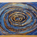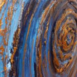 Kolor dominujący niebieski i ciemno niebieski, refleksy w kolorze ciepłego złota
