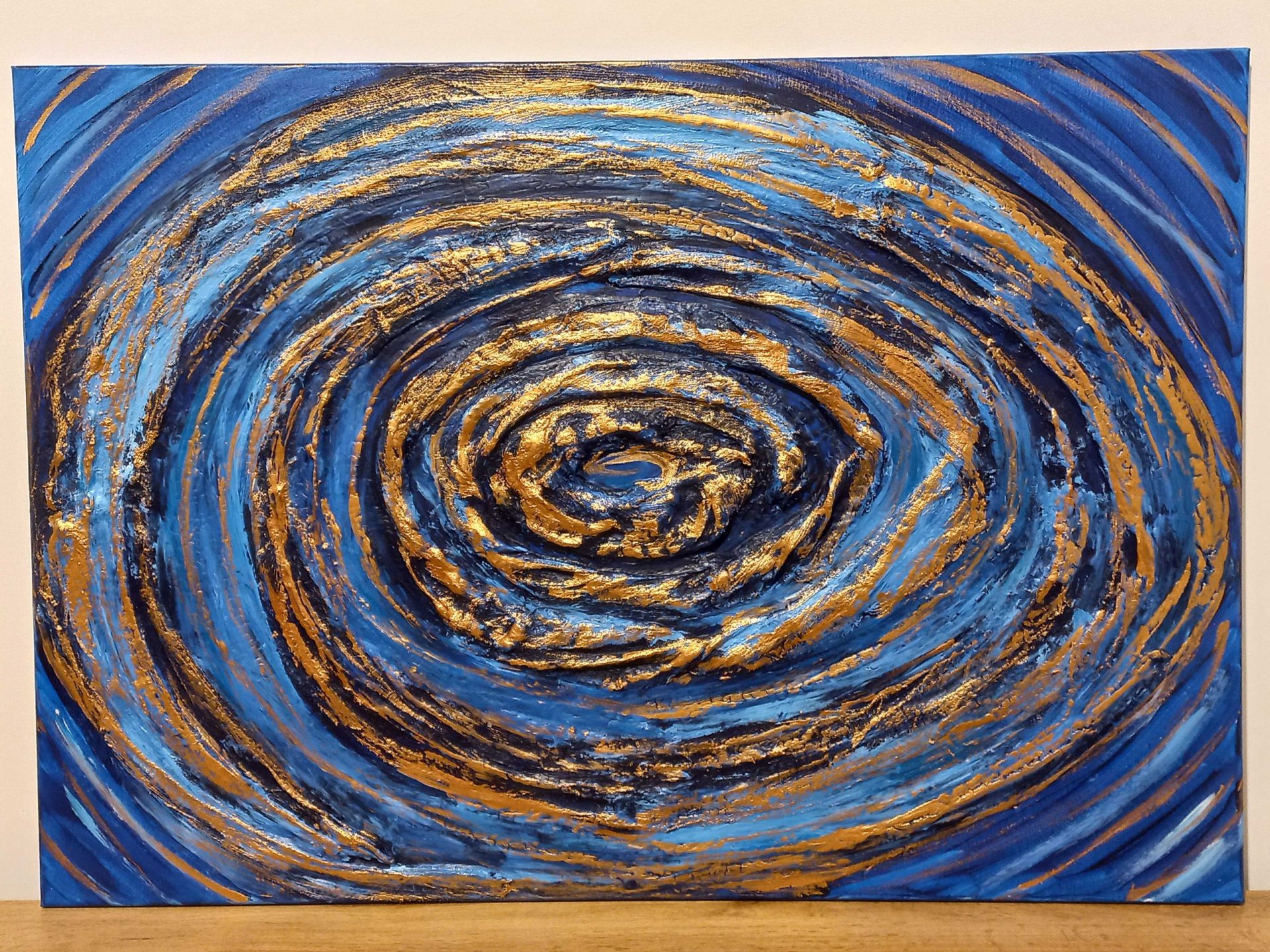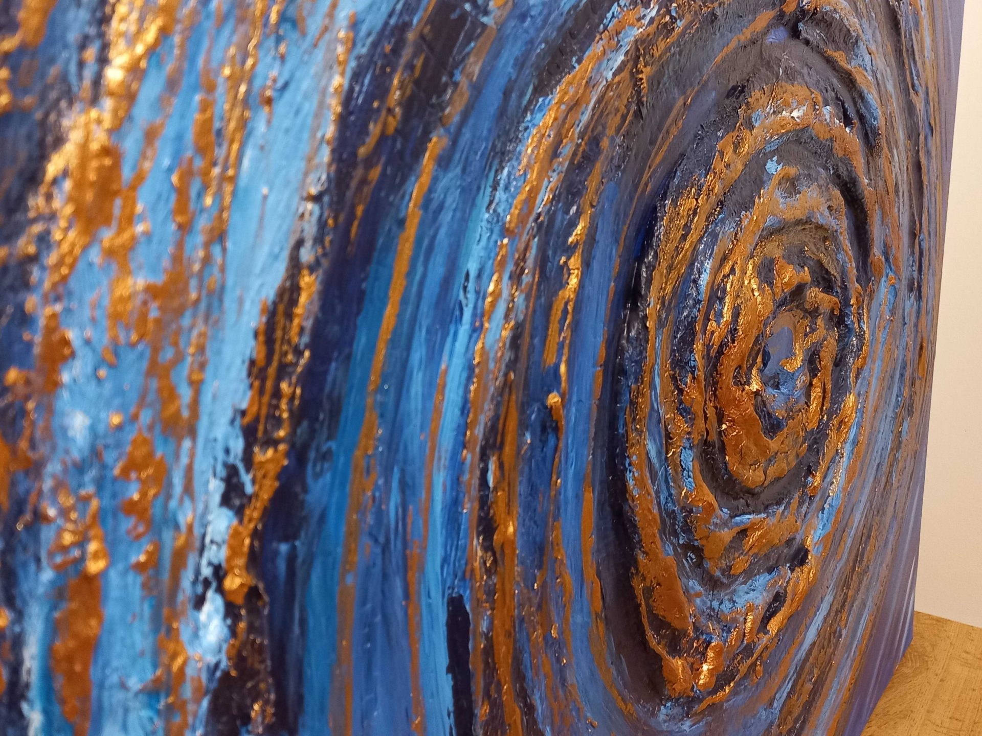 Kolor dominujący niebieski i ciemno niebieski, refleksy w kolorze ciepłego złota
