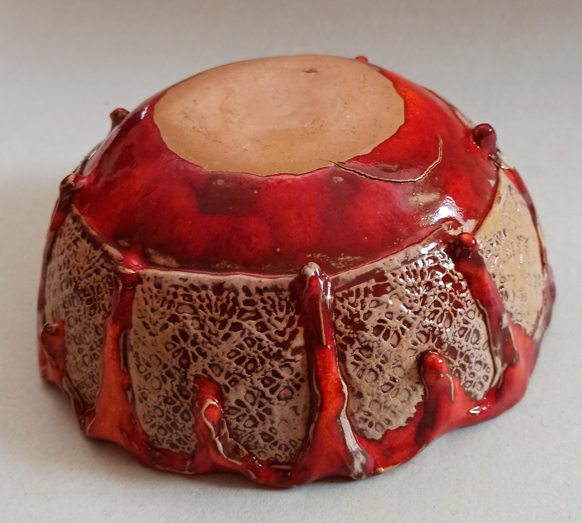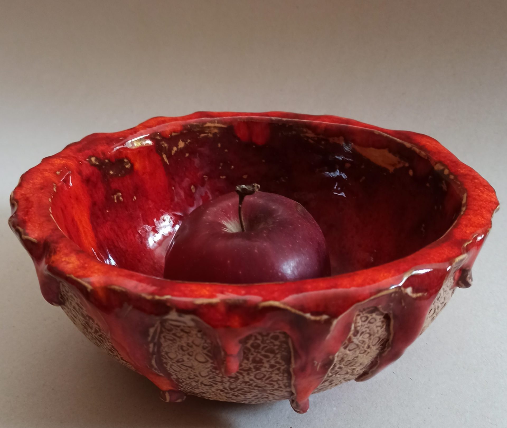 MISA CERAMICZNA NA OWOCE, DROBIAZGI… WYKONANA Z GLINY SZAMOTOWEJ I CEGLANEJ. SZKLIWIONA NA CZERWONO. WYPALANA W TEMPERATURZE 1060 stopni.