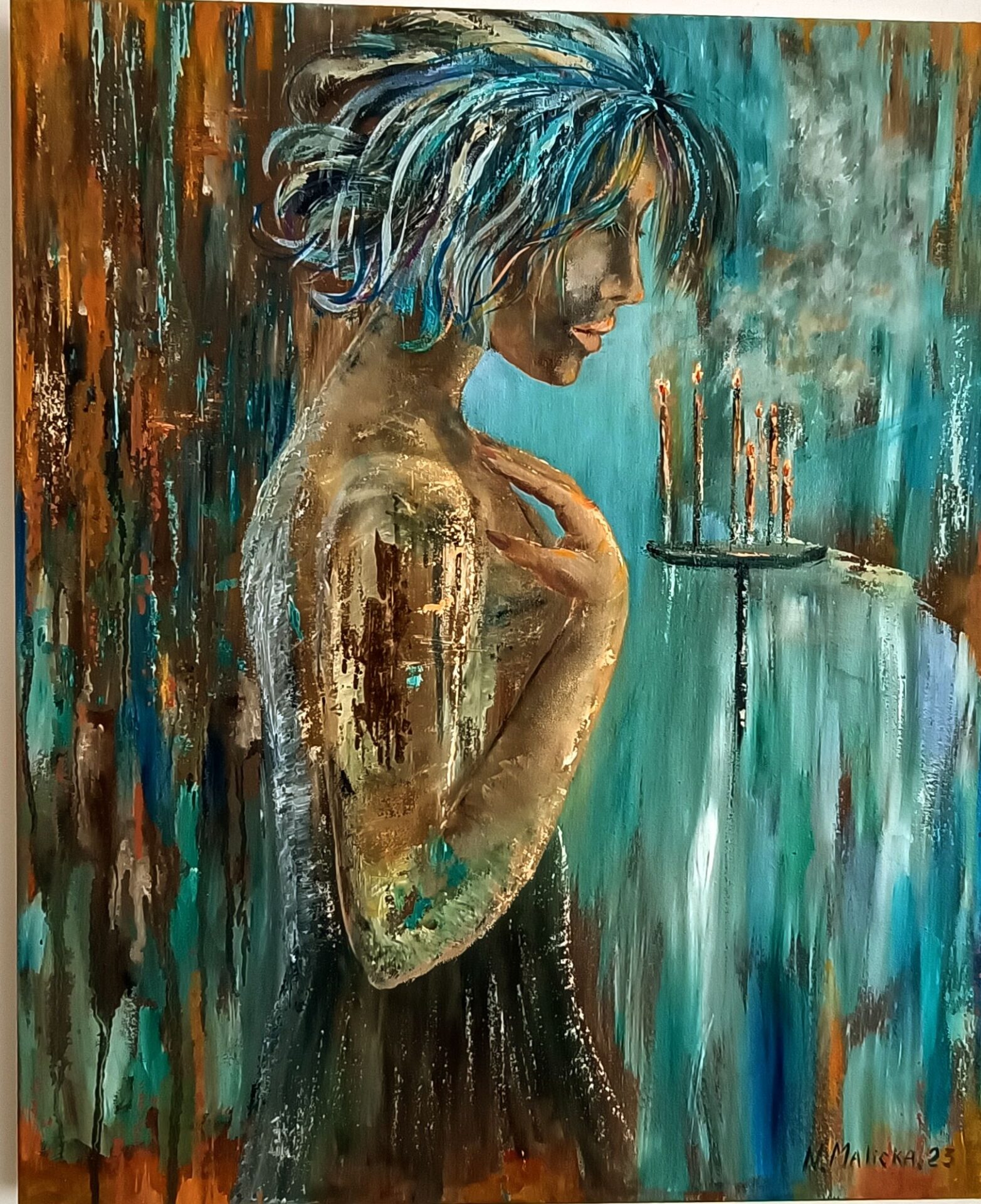 Obraz olejny 50×60,gruba faktura na płótnie.Inspirowany kobietami ,zmuszonymi do ucieczki przed wojną..Ale tego tematu nie narzucam…Każdy widzi swoję… to,co mu podpowiada serce..
