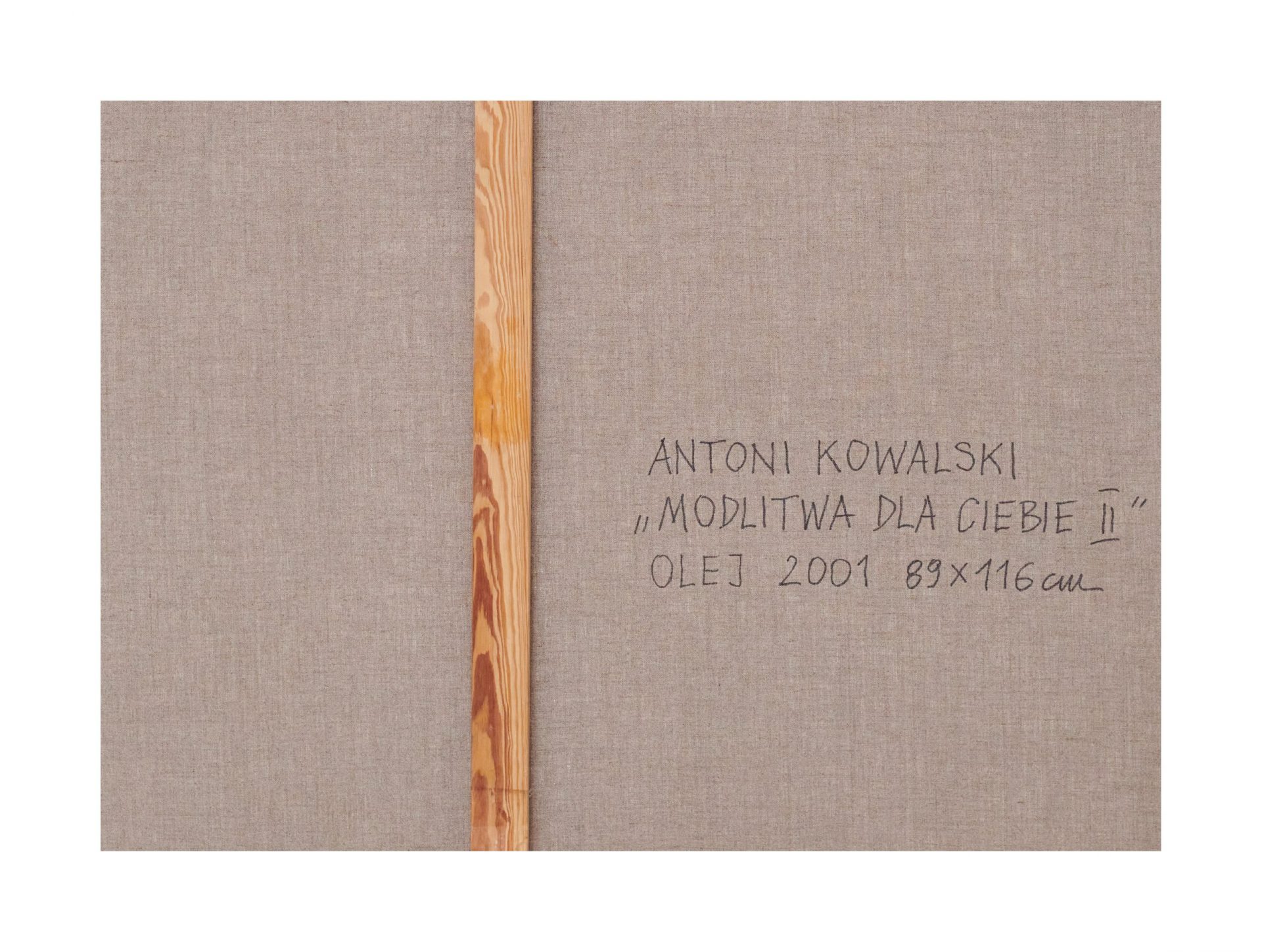 Obraz Antoniego Kowalskiego pod tytułem „Modlitwa Dla Ciebie 2” został wykonany techniką olejną na płótnie. Rozmiary 89 × 116 cm.