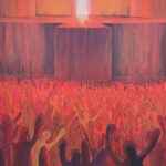 Na obrazie przedstawiony jest kult jednostki i nadawanie boskich praw ludziom.