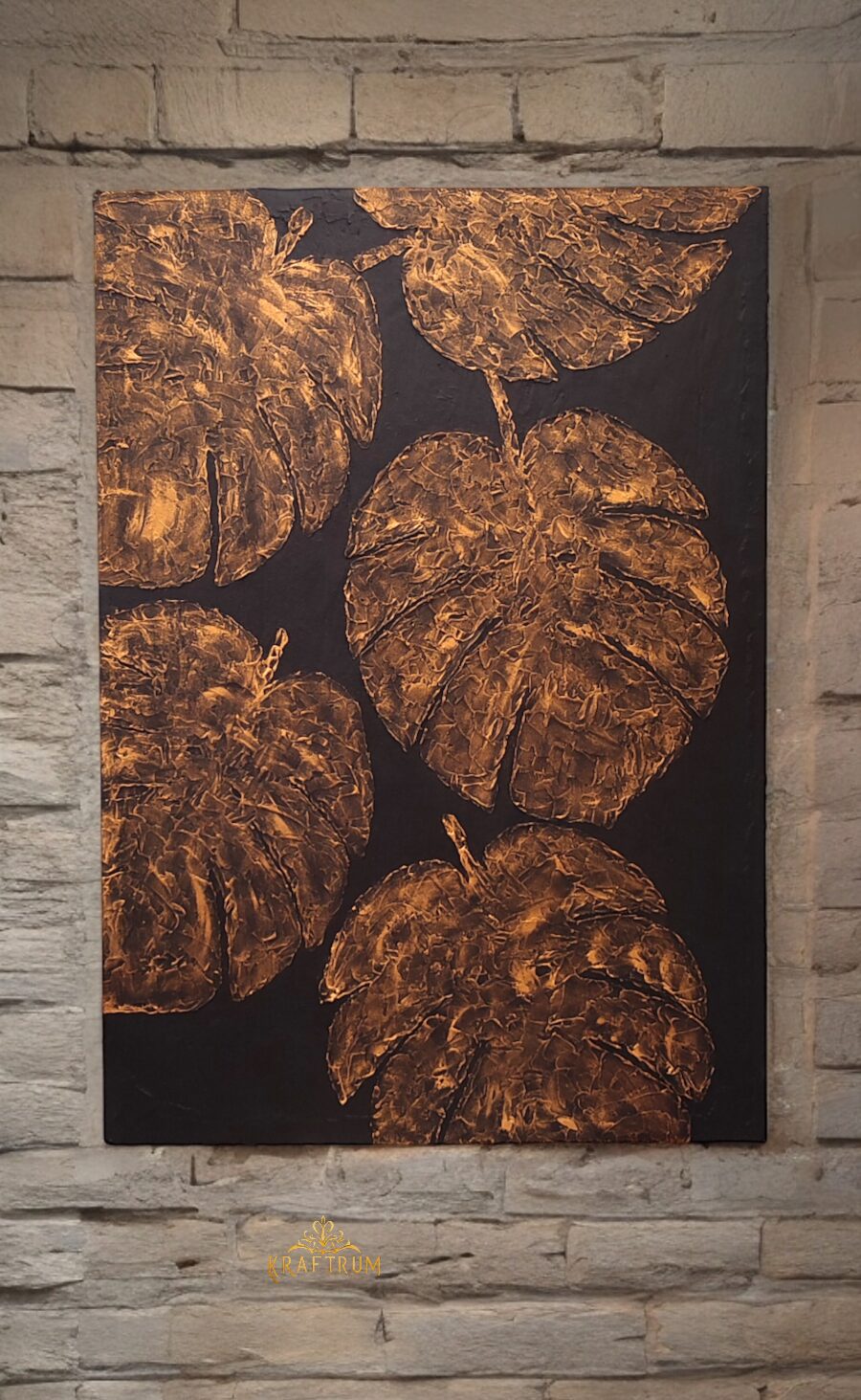Kolejna struktura w kolorach czerni i złota i wzorem liści monstery. Tworzona kilka z dbałością o każdy szczegół, każdemu wnętrzu doda uroku.